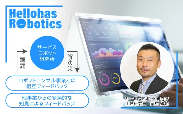 また、ロボットコンサル事業によって獲得した課題を、市場や開発現場へ正しくフィードバックするため、サービスロボット研究所事業も併行して運用します。